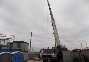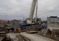 Автомобильный кран Grove GMK 6220L грузоподъемностью 220 тонн задействован в демонтаже старых бетонных балок, его задачей является удерживание на весу части балки, пока ее отрезают алмазной нитью. Работа производится в стесненных условиях, и масса груза варьируется от 8 до 20 тонн, что тоже представляет определенную трудность – необходимо предварительно определить вес, чтобы избежать опрокидывания крана.