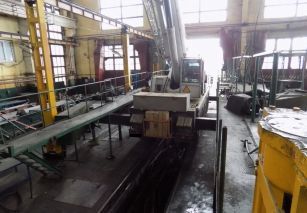 Общая масса кран-балки составляла около 50 тонн и в первую очередь мы сняли тележку с лебедками весом 10 тонн.