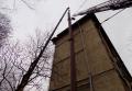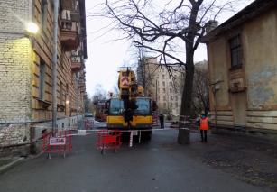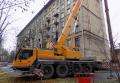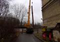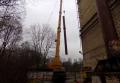 Наш автокран Liebherr LTM 1070-4.1 был арендован и направлен для демонтажа находившейся в аварийном состоянии трубы котельной. Возникла угроза падения трубы на жилой дом, поэтому необходимо было срочно ее снять. Для безопасности были установлены ограждения опасной зоны.
