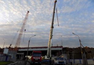 На проспекте Народного Ополчения приняли участие в монтажных работах. Работали ночью в два крана. Чистый вес балки 36 тонн.
