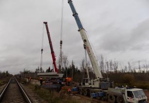 В деревне Хотцы Новгородская области помогли в монтаже балок железнодорожного моста.