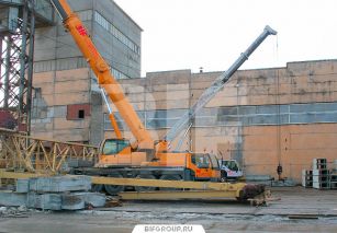 Для быстрого и качественного выполнения монтажных работ по установке козлового крана были арендованы автокраны Liebherr LTM 1060-2 и LTM 1070-4,1 грузоподъемностью 60 и 70 тонн соответственно. Монтаж производился под открытым небом, на площадке возле производственного здания. Благодаря таким условиям, а также слаженным действиям наших опытных операторов крановых установок, полный объем всех необходимых работ был завершен в минимальные сроки, а качественное выполнение работ было по достоинству отмечено заказчиком.