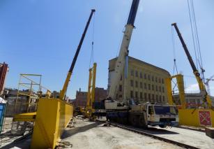 Для монтажа проходческого щита на станции метро Горный институт необходимо было установить козловой кран. Собирали его тремя автокранами - наш Grove GMK 6220L грузоподъемностью 220 тонн и два автокрана от ОАО Метрострой - на 100 и 55 тонн. При подъемах элементов крана нагрузка на Grove GMK 6220L составила 16 и 17 тонн.