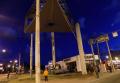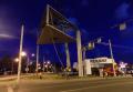 На Ленинском проспекте необходимо было демонтировать рекламную конструкцию в виде закрепленного на верху колонны трехстороннего короба. Учитывая большие габариты и вес рекламного короба, для демонтажа использовался мощный автокран Grove GMK 6220L грузоподъемностью 220 тонн, взятый в аренду у нас на сайте.