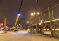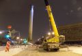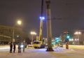 На пересечении Софийской улицы и проспекта Славы по заявке выполняли демонтаж рекламного щита. Вес самого щита составил 7,3 тонны, вес опоры – 6 тонн. Работали на автокране Grove GMK4100L грузоподъемностью 100 тонн.