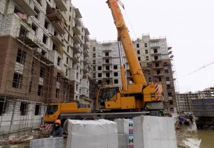 Наш Автокран Liebherr LTM 1070-4.1 грузоподъемностью 70 т. выполнил подачу строительных материалов на крышу. Задача была осложнена тем, что рядом с объектом было сложно найти место, а и без того узкий подъезд существенно осложняли припаркованные машины.
