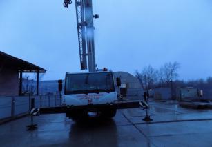 По одной из заявок на услуги крана нам необходимо было погрузить ямобур на платформу для транспортировки по городу, а затем на объекте снять его, и для выполнения грузоподъемных работ был направлен 60-тонный автокран Liebherr.