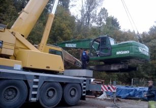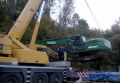 В Токсово Ленинградской области потребовалась погрузка плавающего экскаватора весом 19 тонн на трал с целью его транспортировки для очистки водоема. Для погрузки спецтехники на платформу был необходим мощный автокран, и в нашу компанию подали заявку на аренду 70-тонного крана Liebherr.