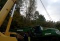 Трал уже находился на объекте, поэтому по прибытию в Токсово автокран под управлением нашего оператора незамедлительно приступил к выполнению грузоподъемных работ. Весь процесс погрузки, включая подготовку крана и установку спецтехники на трал, занял немного времени и транспорт с экскаватором выехал на место назначения.