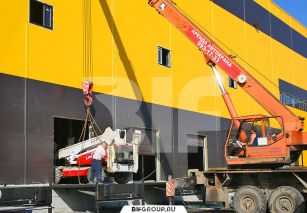 Непосредственно процесс разгрузки представлял собой стандартную процедуру, но затем требовалось переместить доставленную спецтехнику внутрь сооружения, а для этого в существующих на объекте условиях необходимо было совершить перемещение груза через проем и снова потребовались услуги крана, что заранее уже было предусмотрено заказчиком.