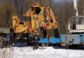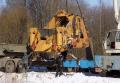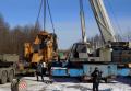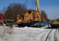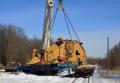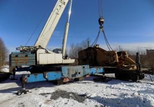 До Тихвина оборудование доставлялось на железнодорожной платформе, и первым этапом работ была разгрузка трубогиба с ж/д транспорта и погрузка на автомобильную платформу. Затем последовал перегон в д. Бор и выгрузка трубогиба на объекте.