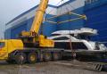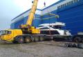 По очередной заявке на аренду автокрана нам было необходимо снять в Кировске яхту с транспортировочного трала. Вес яхты составлял 30 тонн, и для выполнения работ был направлен автокран Grove GMK 4100L грузоподъемностью 100 тонн. После организации сопровождения кран оперативно прибыл на объект, и яхта была аккуратно снята.