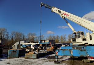 Для проведения такого ремонта снимали по секциям стрелу с «Галичанина», ее общая длина составляет 30,2 метра. Для демонтажных работ кран арендован здесь. Использовался автокран Grove GMK 6220L грузоподъемностью 220 тонн.