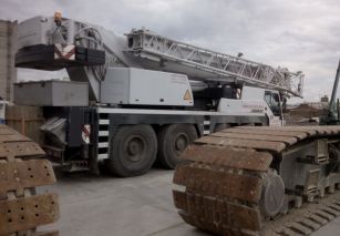 После выяснения требуемой грузоподъемности и заключения договора ведомый нашим специалистом автокран Liebherr направился в указанное место и приступил к выполнению разгрузочных работ. К удовольствию заказчика, разгрузка гусеничного крана была оперативно завершена и на этом наши обязательства по договору были исполнены. После этого наш Liebherr вернулся в автопарк, а гусеничный Liebherr был задействован для монтажа рельсового «портовика».